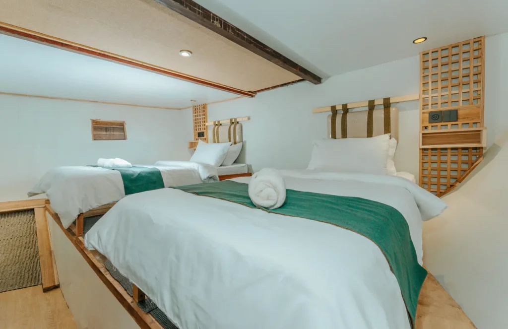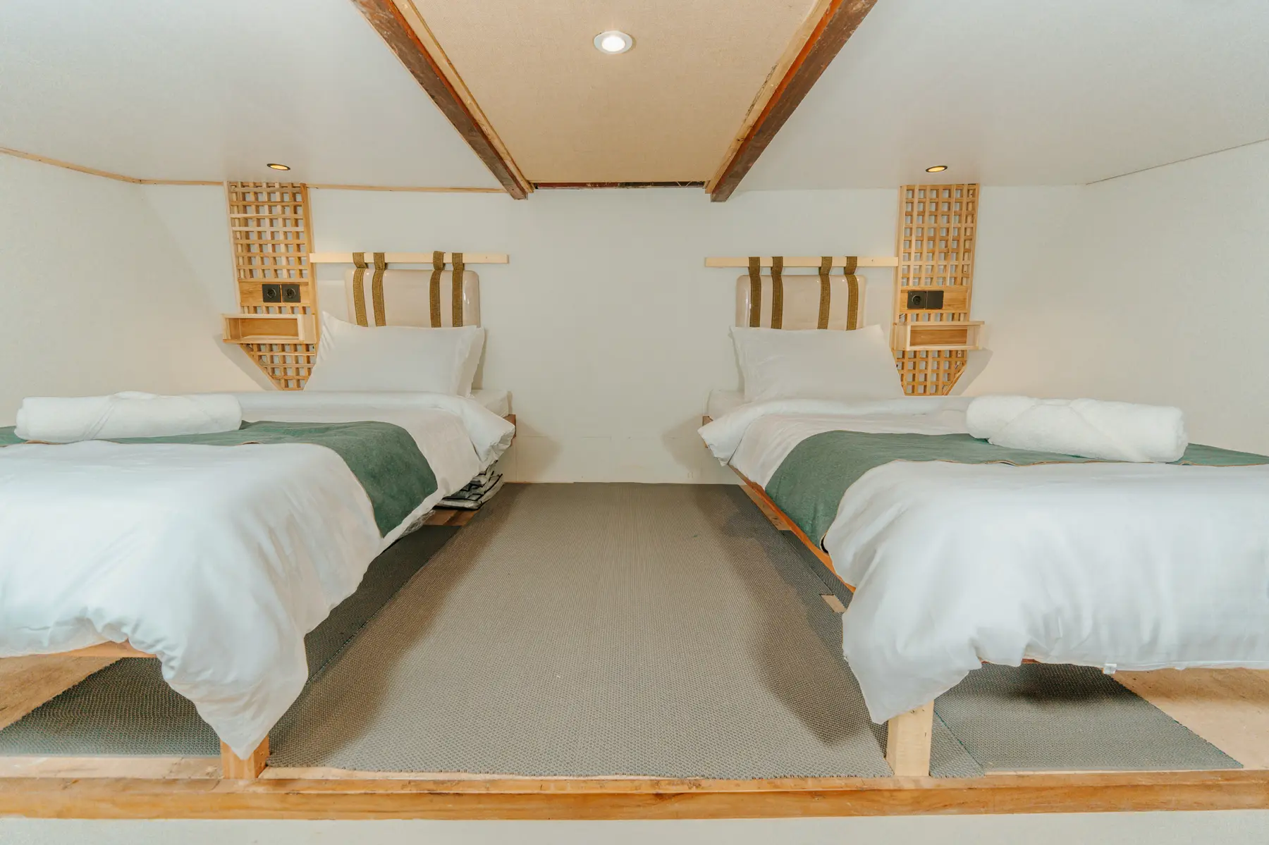 Located on the lower deck, the Superior Cabin provides a peaceful retreat after a day of adventure. Featuring a double bed and private bathroom, it combines comfort and value, a favorite for travelers who appreciate simplicity with a touch of luxury.