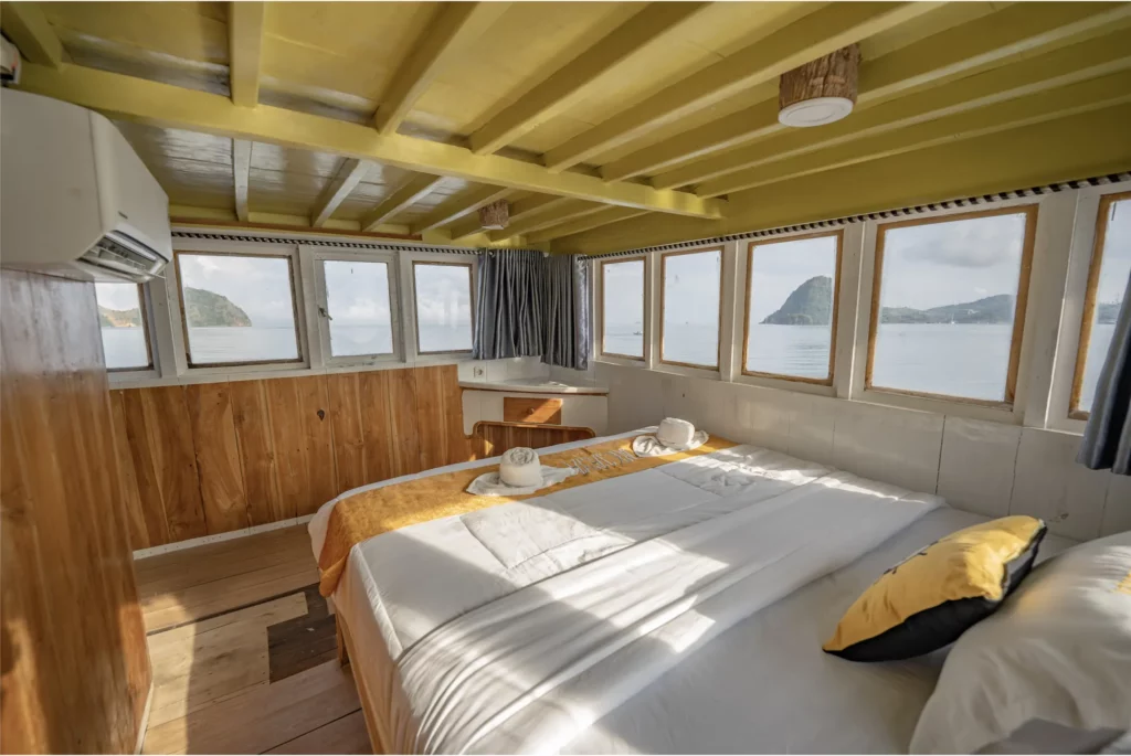 The cabins on NK Jaya 2 are designed for comfort and privacy. Each of the six cabins features a cozy bed, en-suite bathroom, and air conditioning, providing a relaxing retreat after a day of exploration. Thoughtfully decorated and well-appointed, the cabins ensure a pleasant and restful stay while you enjoy your voyage around Komodo Island.