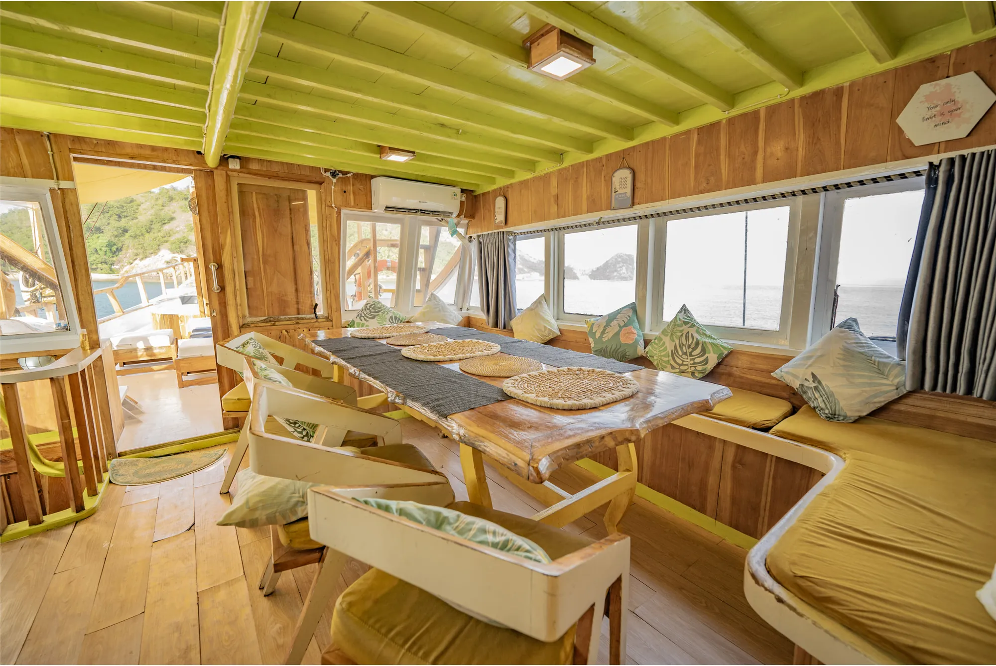 The six inviting cabins, each with an en-suite bathroom, provide a cozy and private retreat, making it an ideal choice for family vacations or small group adventures. With a robust Mitsubishi 8D C9 cylinder engine, NK Jaya 2 delivers a stable and comfortable ride, ensuring a relaxing voyage.