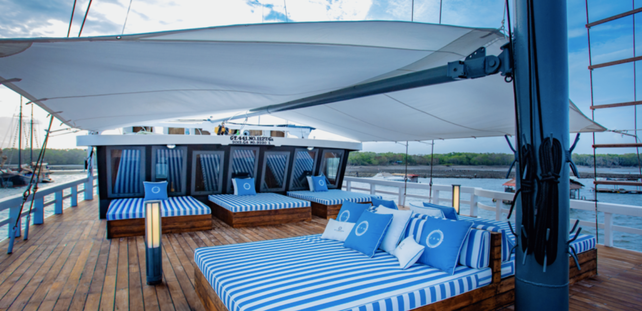 It is a custom phinisi-style yacht, built in 2012 and refurbished in 2020 for luxurious safaris. It has 9 high-class cabins and suites, hosting 20 people. The 53-meter vessel was created by South Sulawesi’s Konjo boat builder tribe and has two masts for stability and elegance. The yacht offers guests a mix of ancient romance, modern design, and technology while exploring unspoiled destinations.