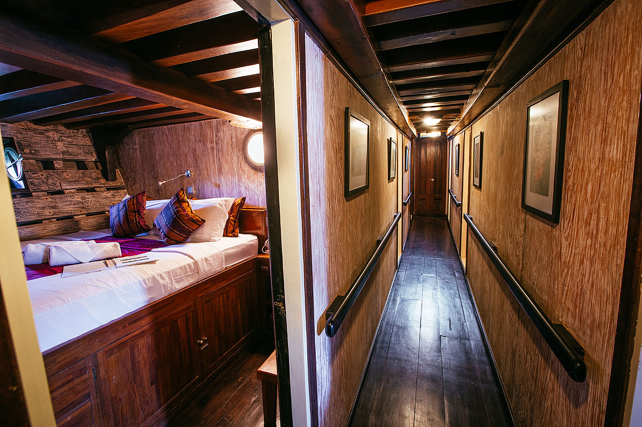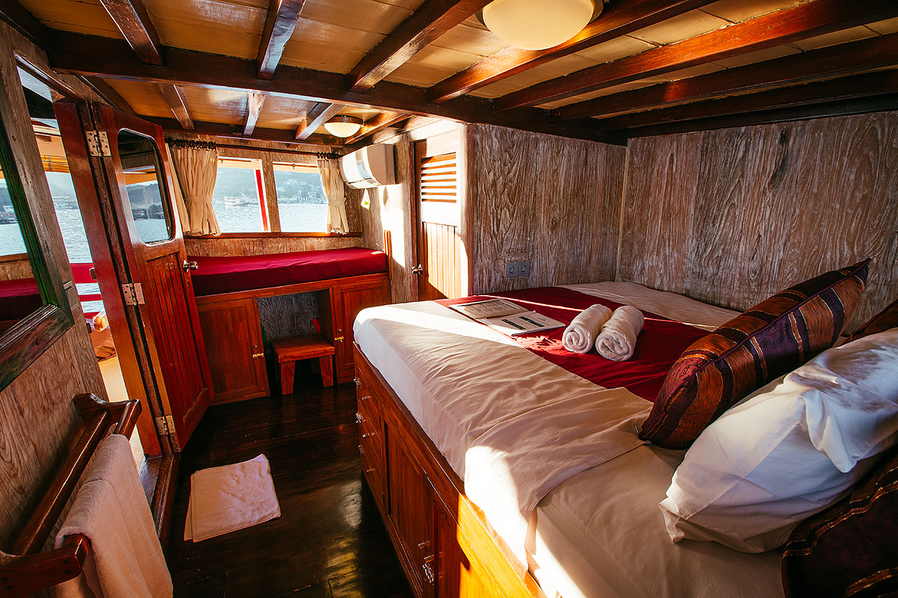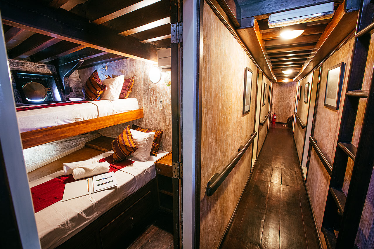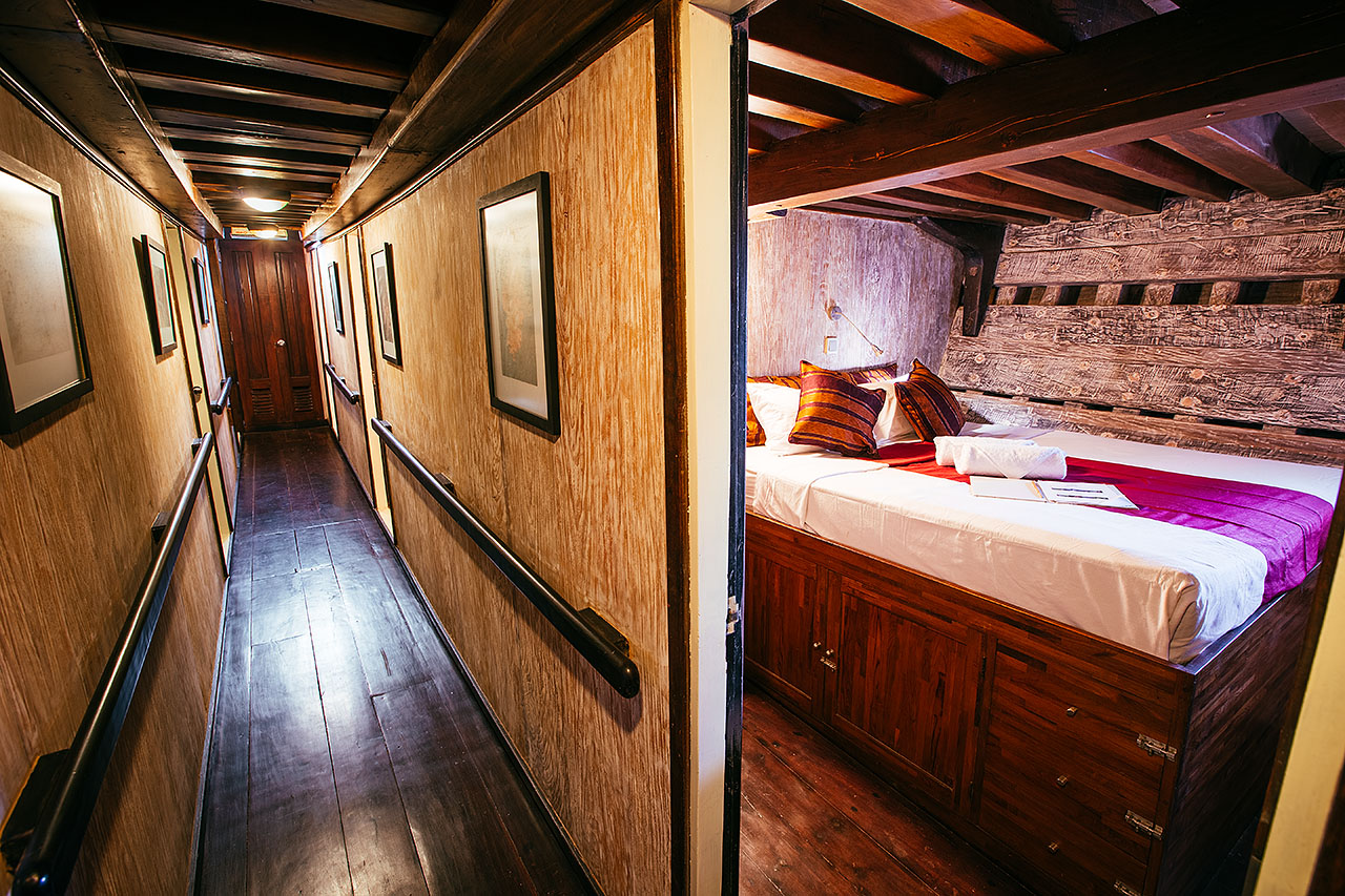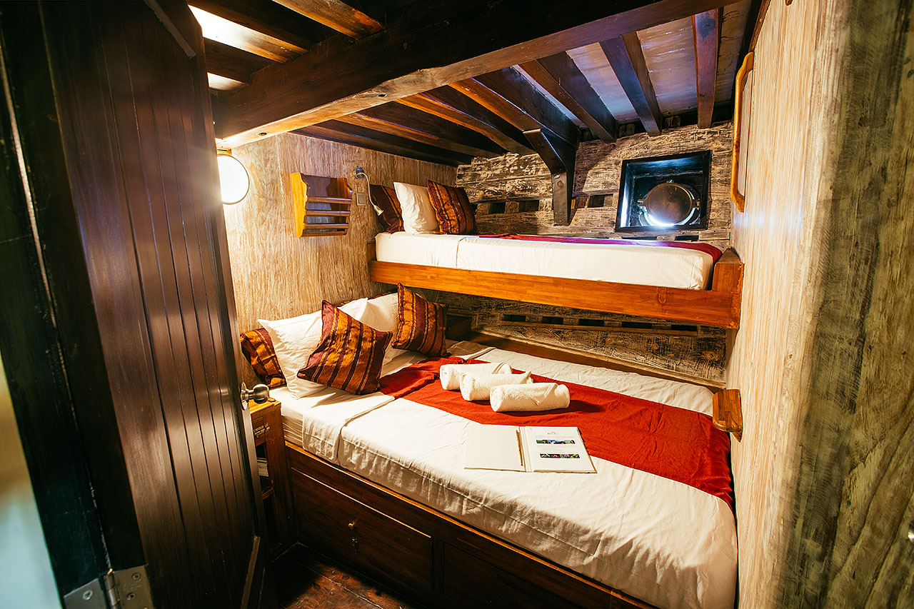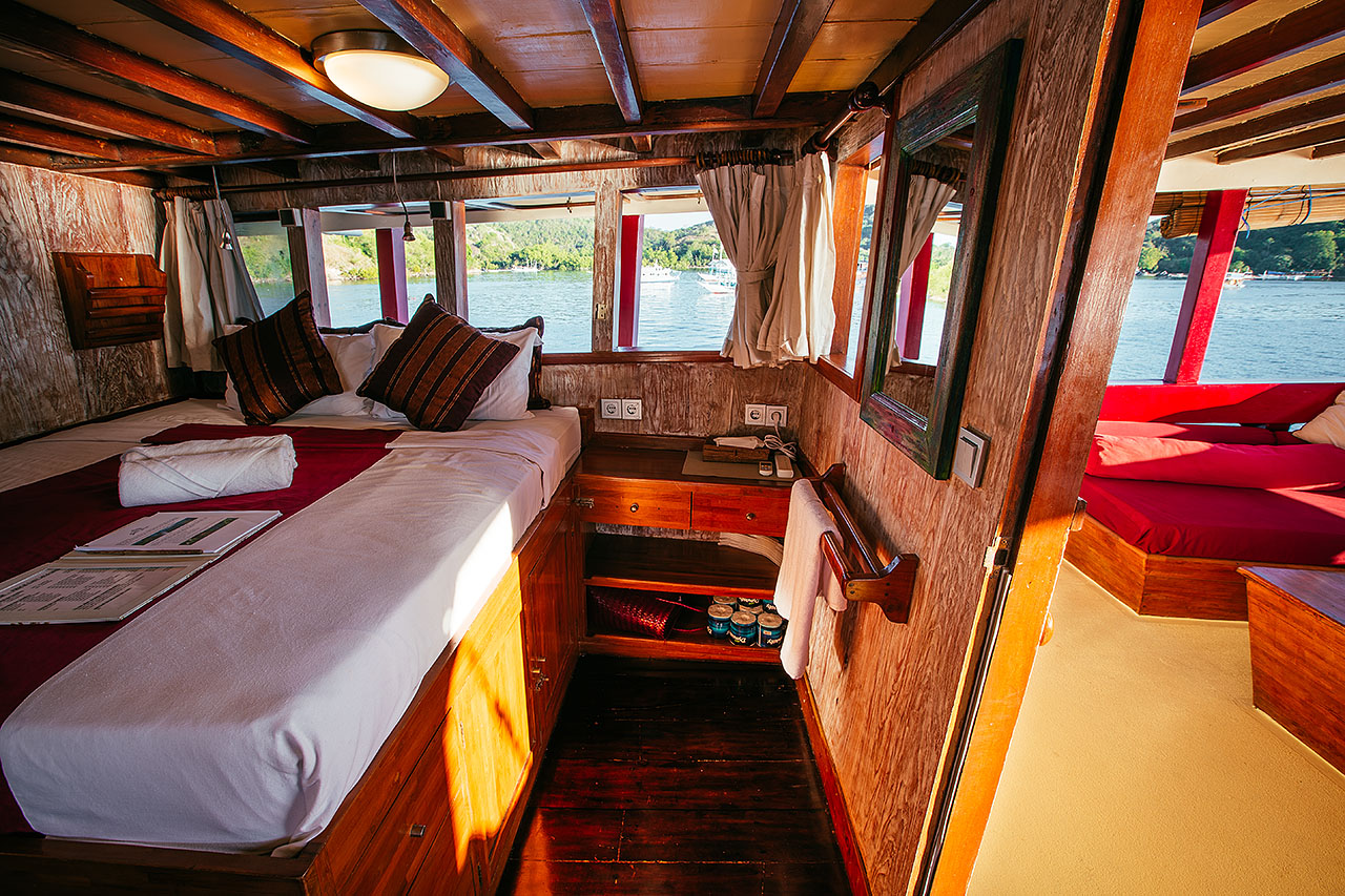 The cabins, main dining room, and deck areas are wonderfully arranged. The four double & four twin rooms are finished to a high standard, are all equipped with air conditioning, and come with king-size beds in the doubles and large single beds in the twins. Two double cabins are on the upper deck, offering breathtaking ocean views.