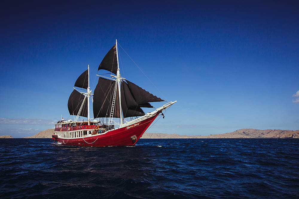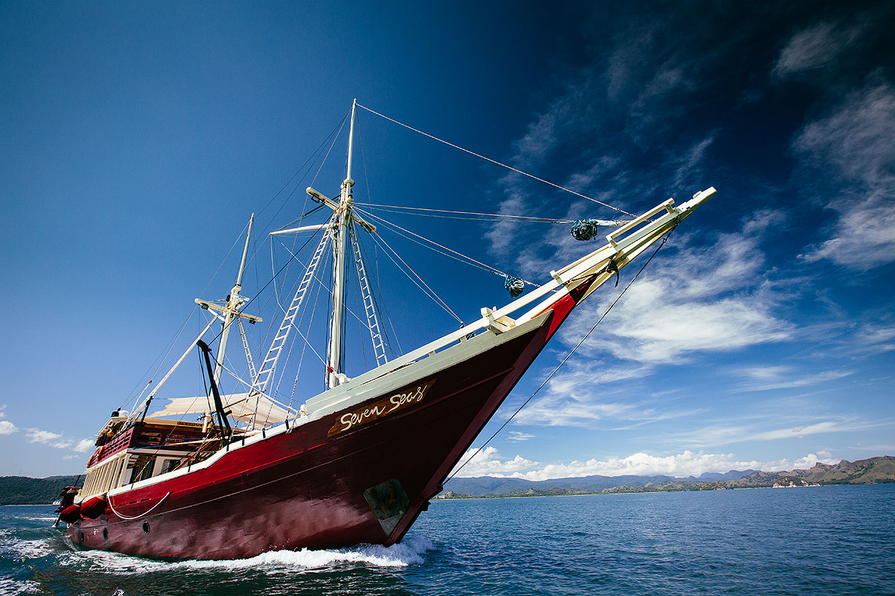 The Seven Seas is a 40m Buginese schooner that has set new standards in Indonesian luxury liveaboards. Custom-designed to accommodate up to 16 guests over three decks, the Seven Seas is perfect for a comfortable scuba diving trip in the Indonesian waters. The boat sails in Komodo, the Banda Sea and also hosts some special trips around Sumbawa and Flores.