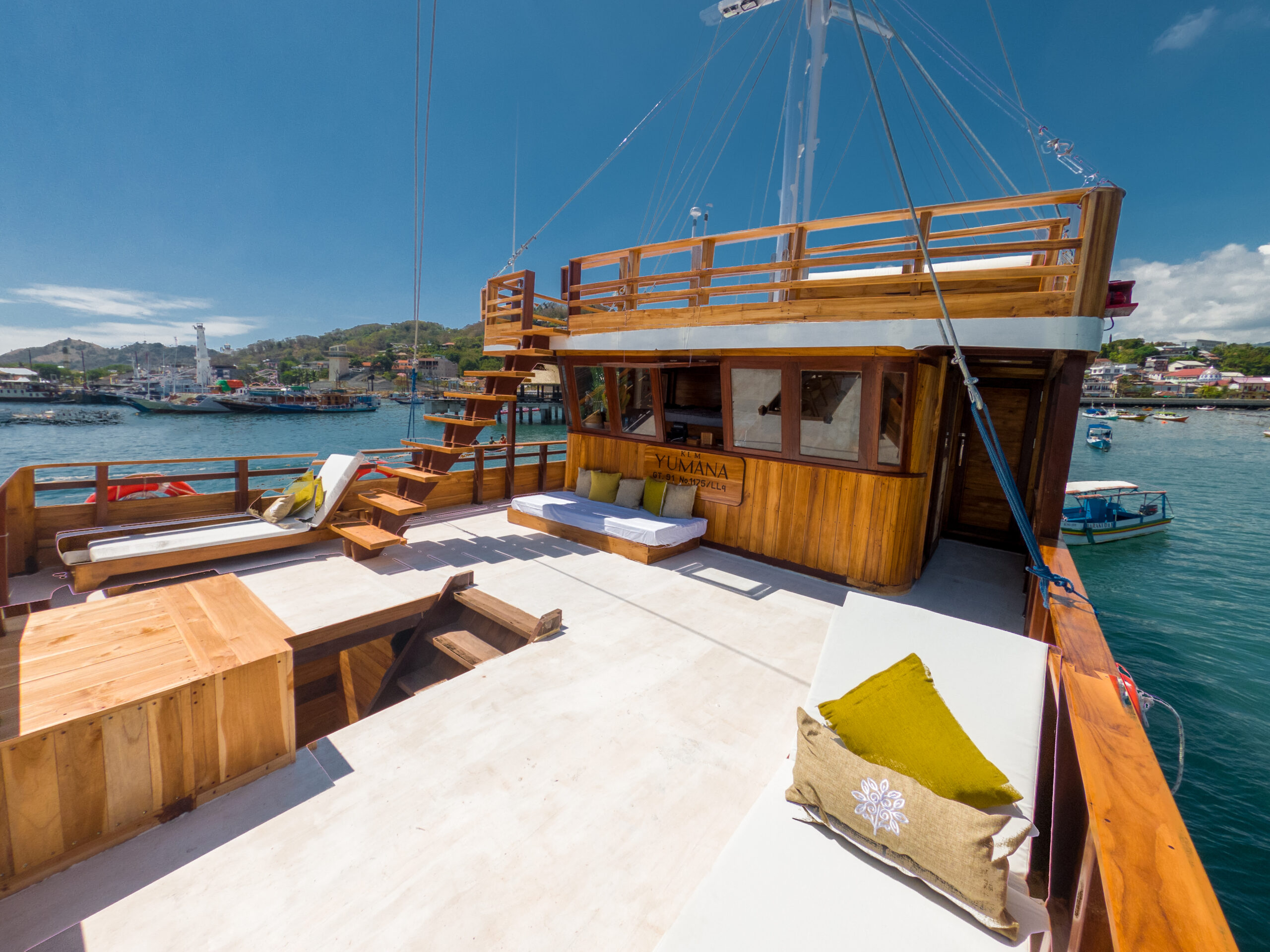 The Yumana Liveaboard is a meticulously crafted Phinisi Boat, blending tradition with modern comfort. Constructed by skilled local artisans in 2021, it boasts an ironwood base and an elegant hard teak wood upper structure. With a length of 32 meters and a width of 6 meters, the Yumana accommodates up to 25 guests, ensuring an intimate and personalized experience.