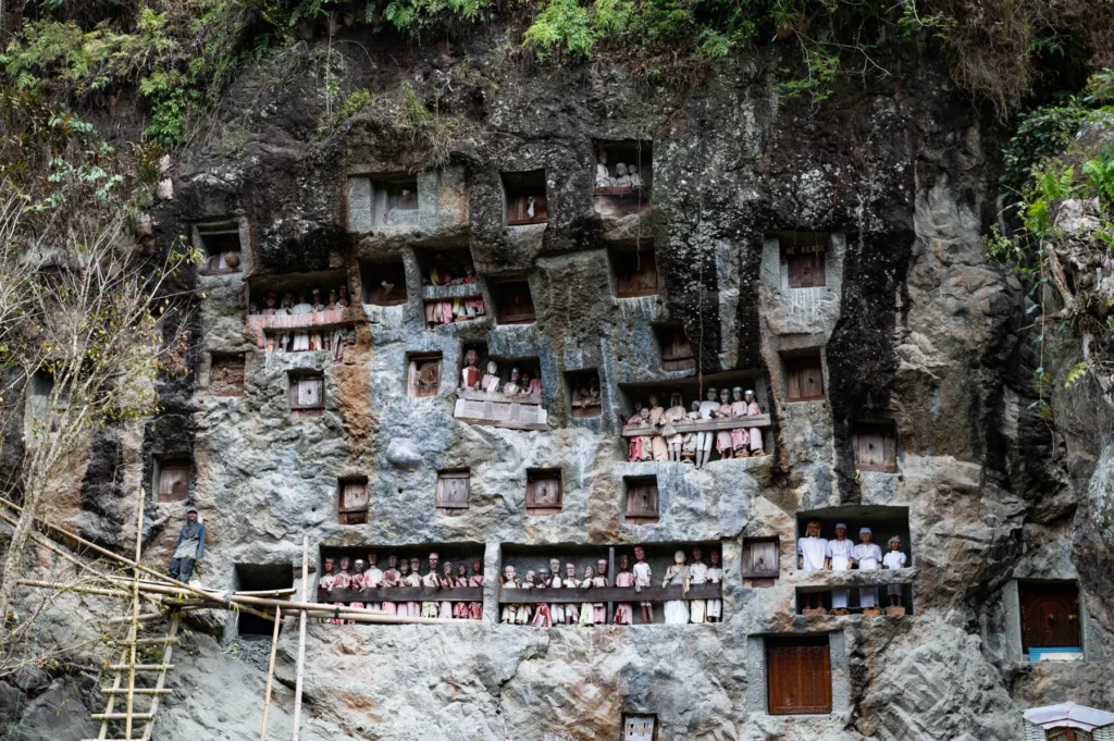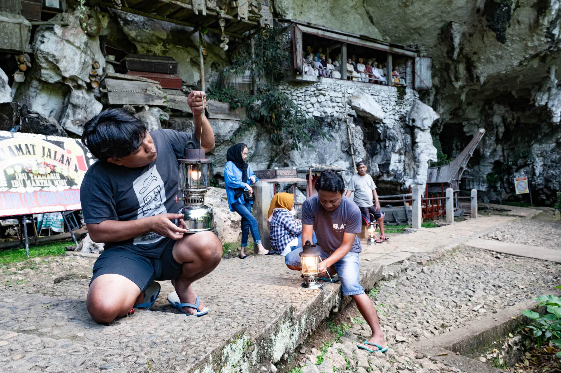 Explore traditional villages with their iconic Tongkonan family homes, visit the cliffs of Lemo with their effigies of the deceased (Tau Tau), the Londa caves, and the royal tombs of Suaya. Enjoy a short walk in Tampangallo, and if timing allows, visit the vibrant markets in either Makale or Rantepao.