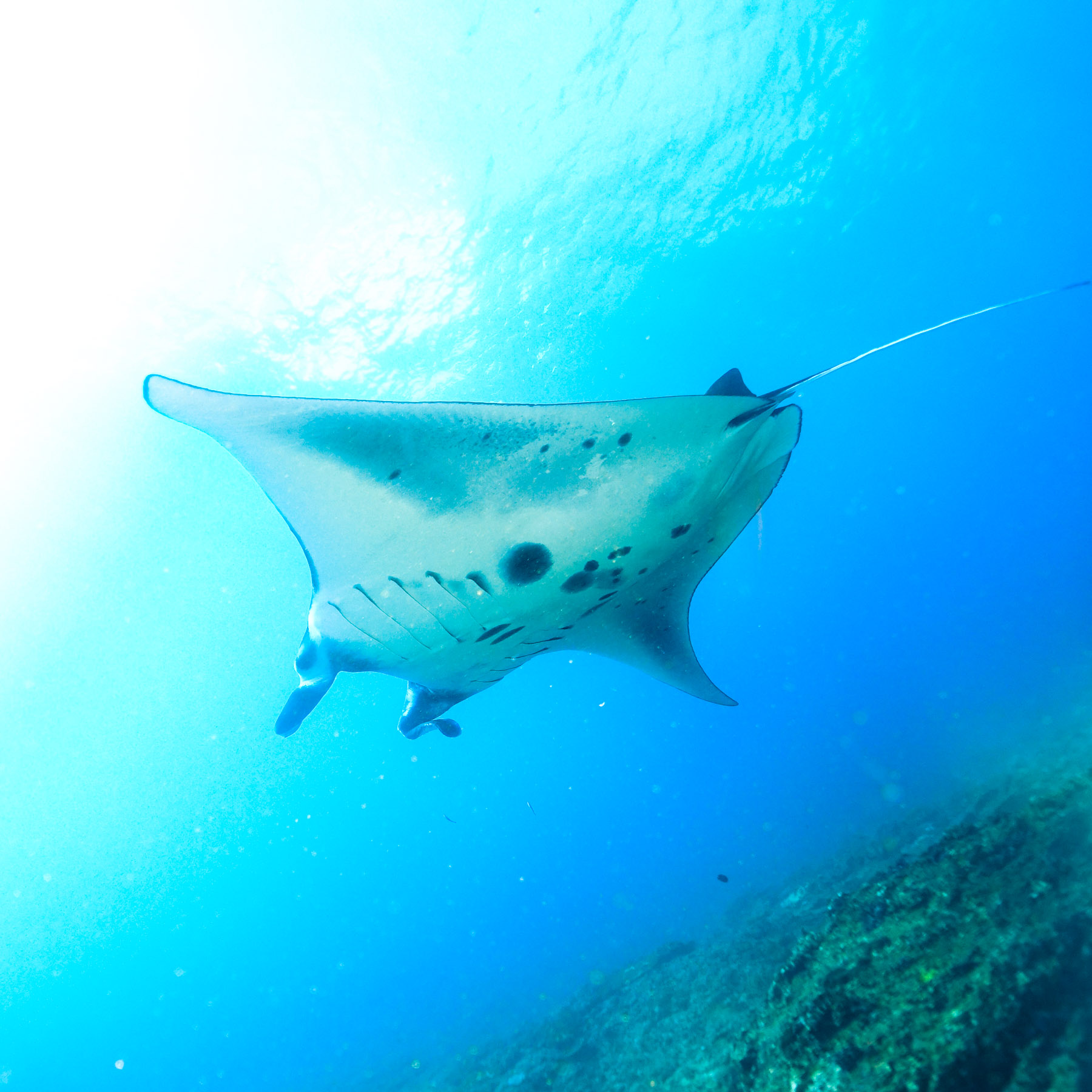 With its colony of manta rays swimming around the cleaning station all year-long, Manta Point is probably the most famous dive site of the island. It is a shallow dive (maximum 15 to 20 meters), protected from currents, so it is accessible to divers of all levels. The dive site can get quite busy, especially in high season, but our captain and guides will make sure to reach the dive site at the optimal time to avoid the crowds!