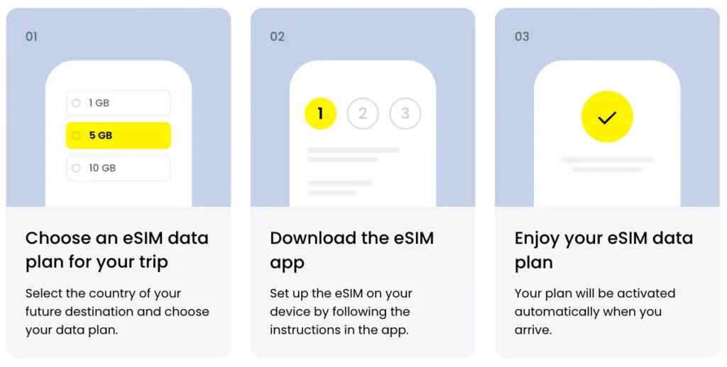 To get started, visit the Saily website and check their different offers and download their easy to use eSim app