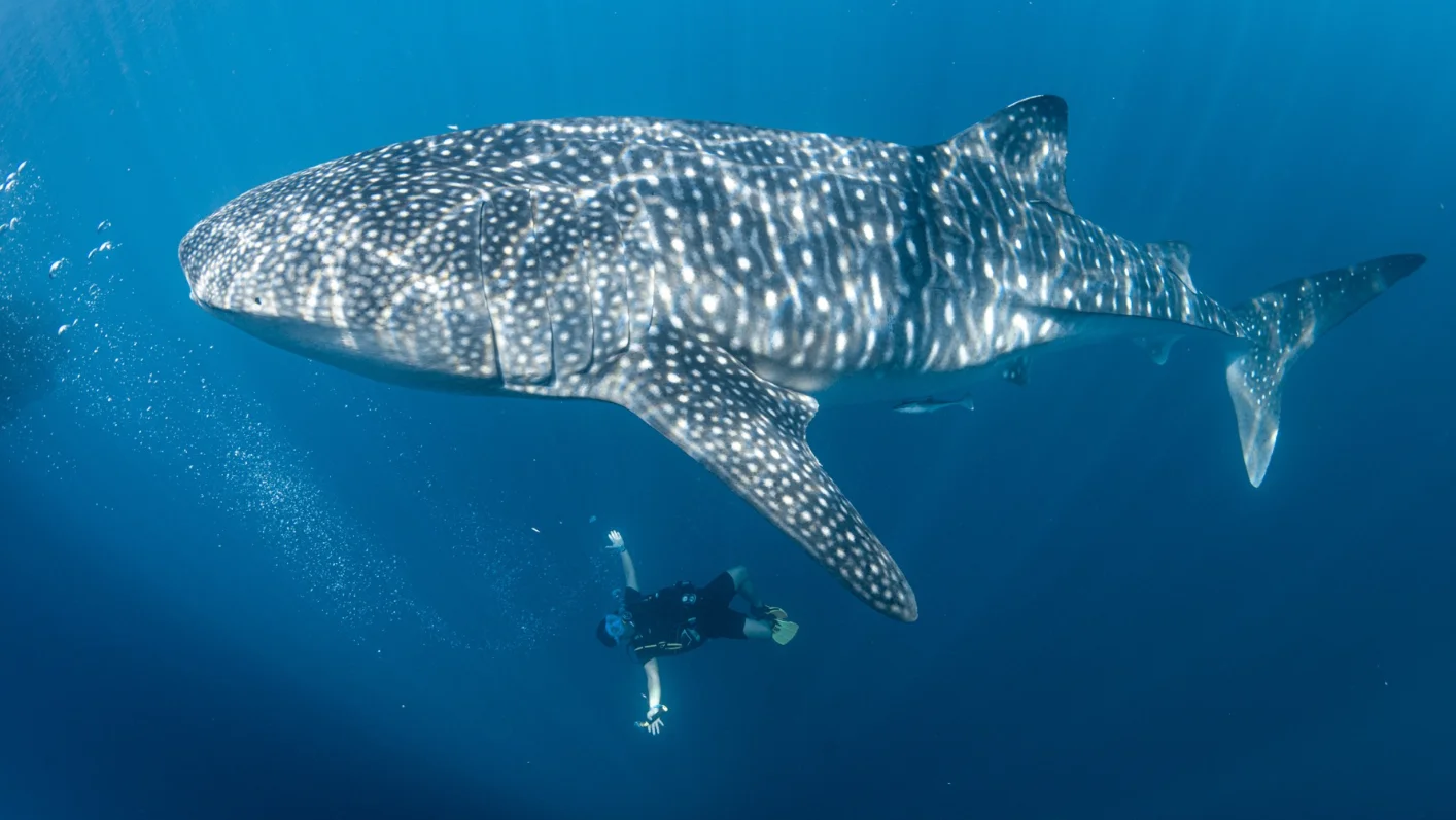 Despite their massive size, whale sharks are no hunters. They are filter feeders, meaning they feed by filtering ocean water for plankton and small fish. This diet makes them completely harmless to humans. Known for their docile and calm nature, they are often described as the gentle giants of the sea.